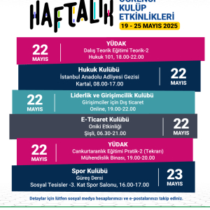19 Mayıs-25 Mayıs Haftalık Kulüp Etkinlikleri