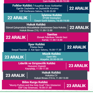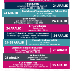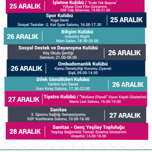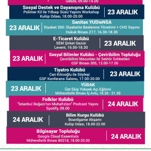 22 Aralık-28 Aralık Haftalık Kulüp Etkinlikleri